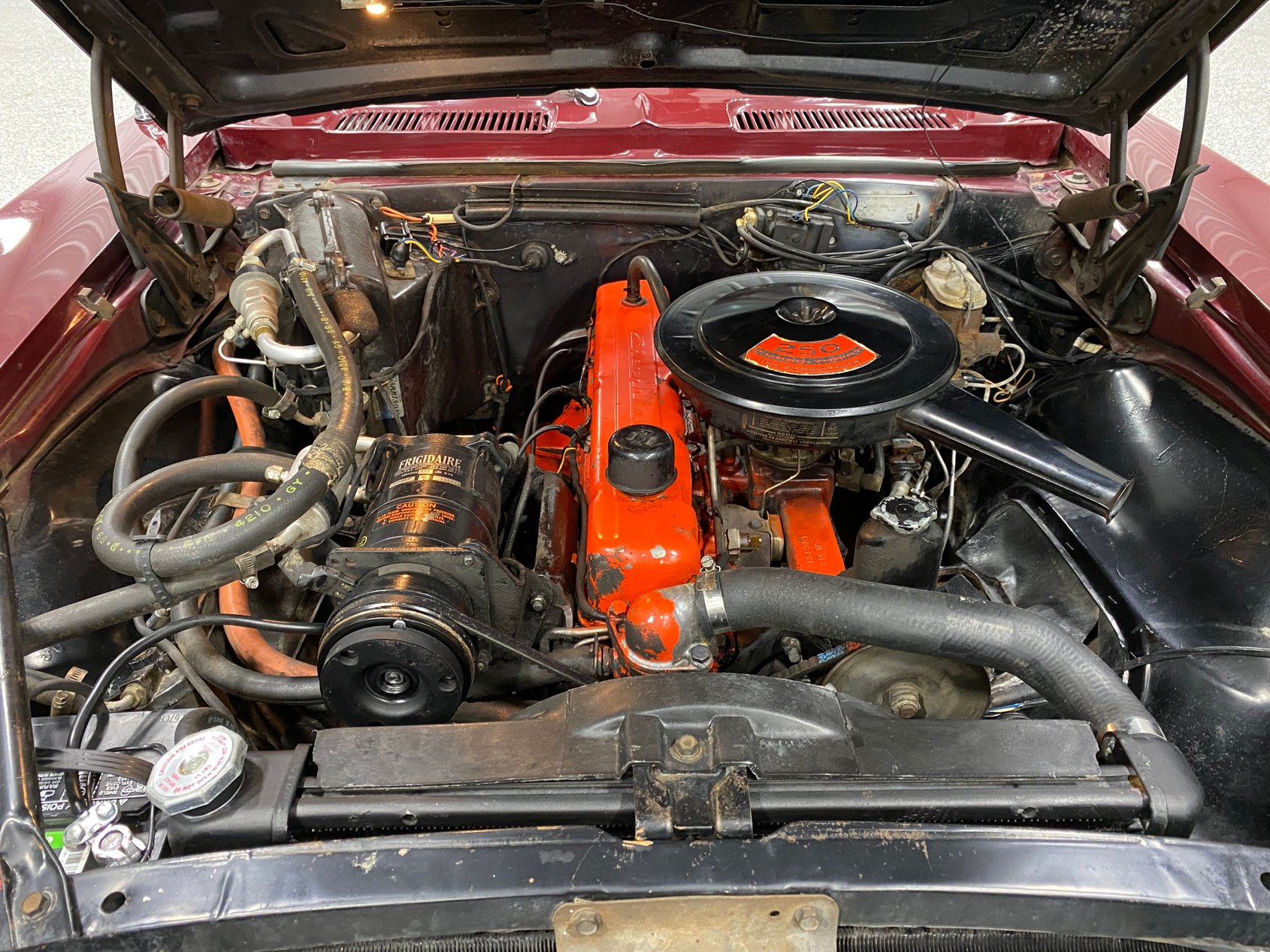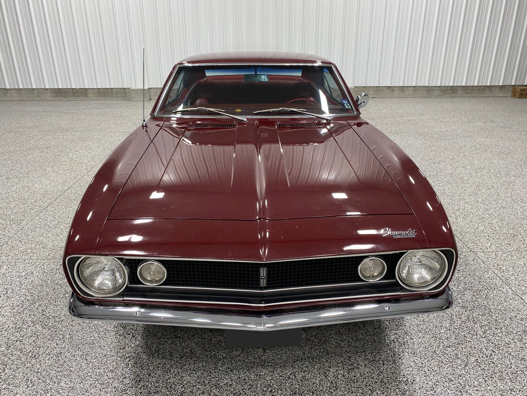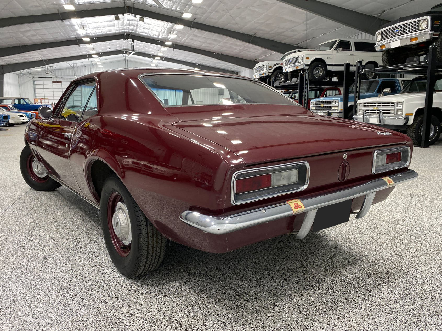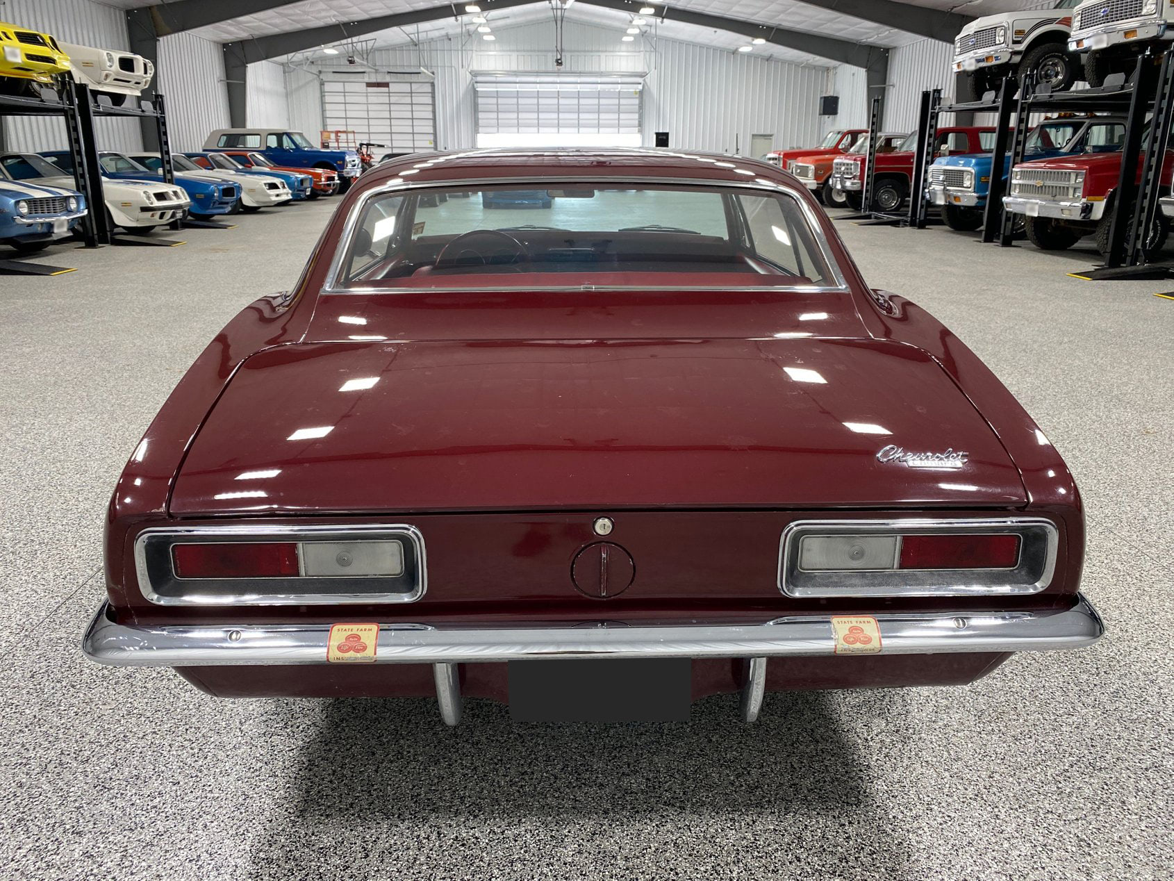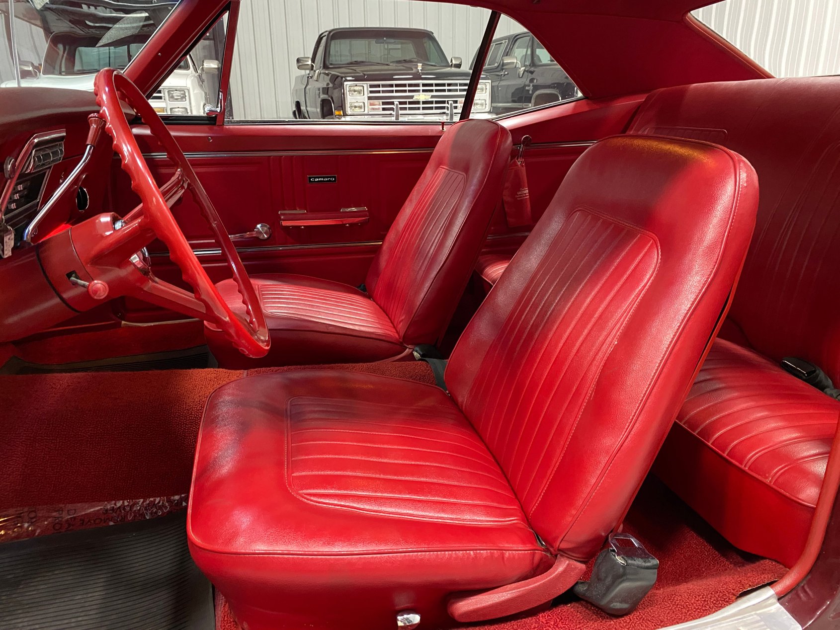 This Camaro is equipped with factory air conditioning, an uncommon feature for its time, enhancing comfort in all weather conditions. It also features power steering, making it easier to handle, and comes with poverty hub caps that lend a vintage, utilitarian look.