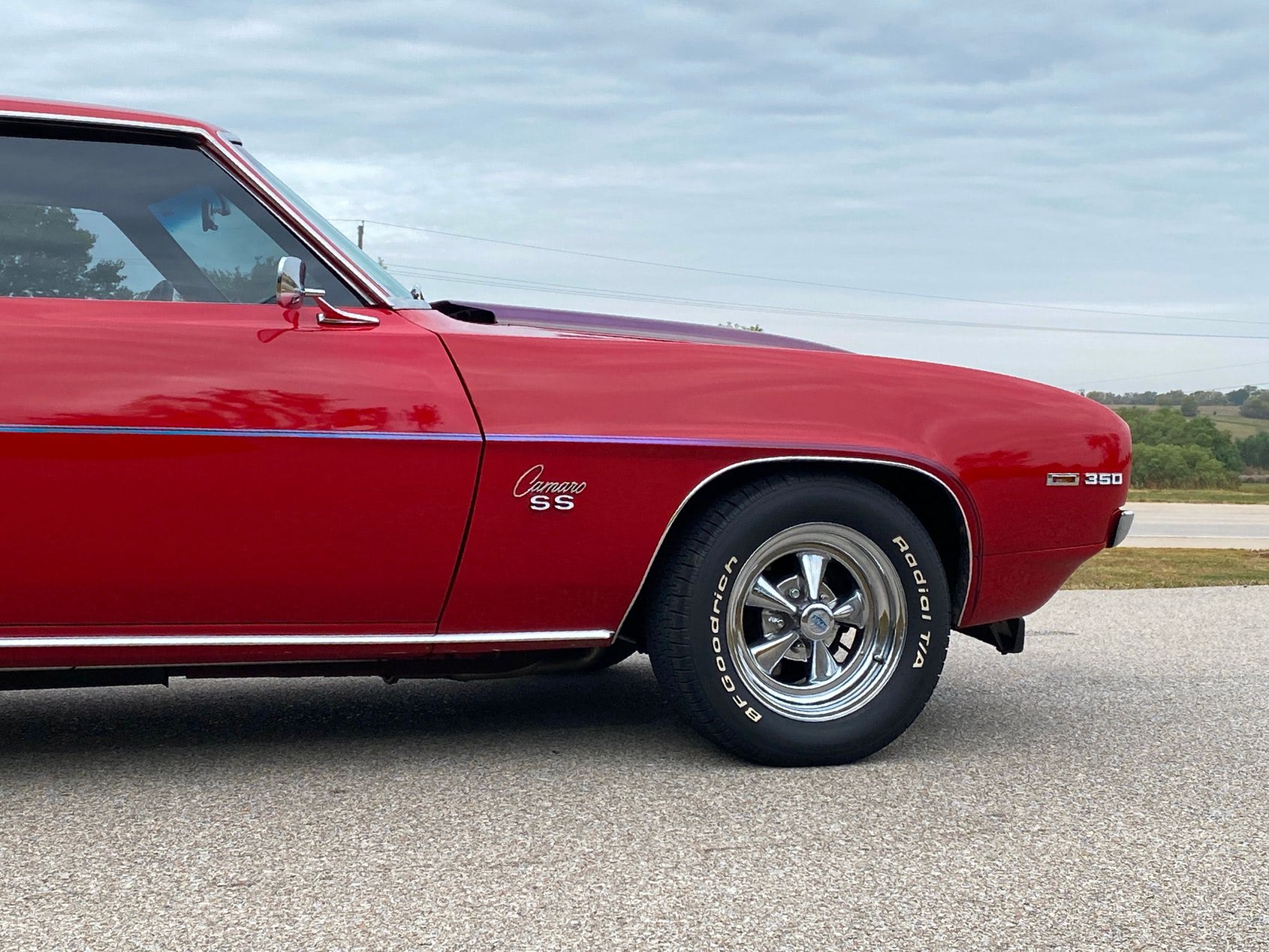 This 1969 Chevrolet Camaro SS, an X11 model, is a meticulously upgraded classic that combines performance and modern amenities. Under the hood, it boasts a Chevrolet ZZ4 350ci engine, generating a potent 355hp and 410 ft-lbs of torque. The engine features aluminum heads with a 10.0:1 compression ratio and a hydraulic roller cam for optimal performance.