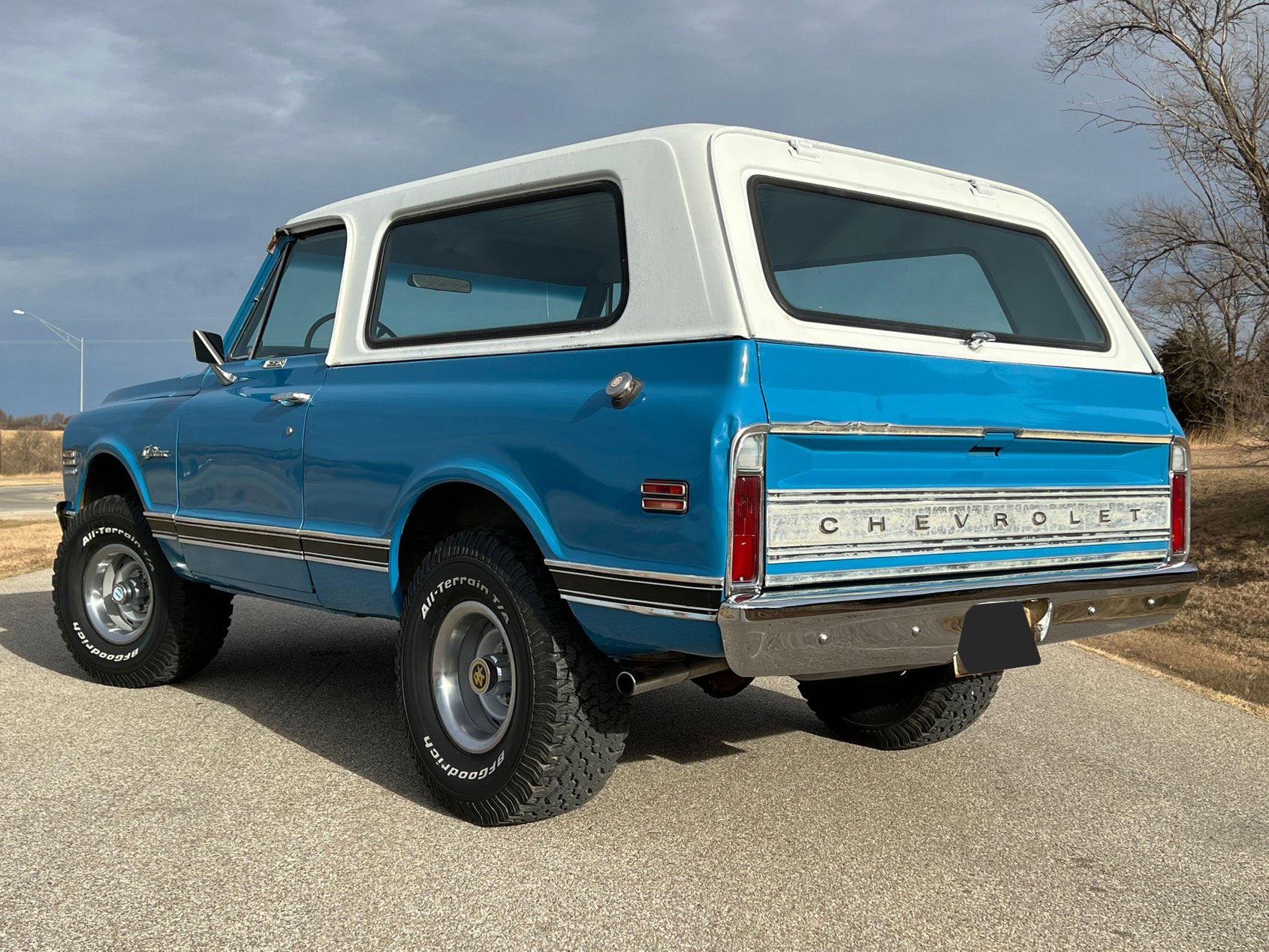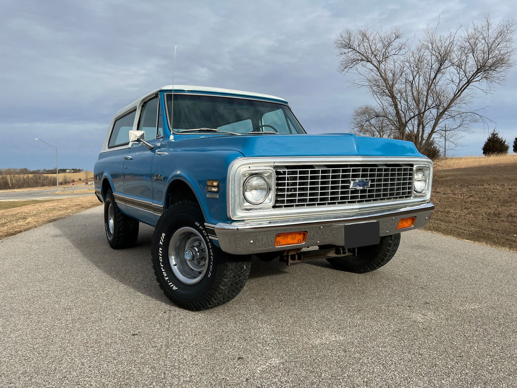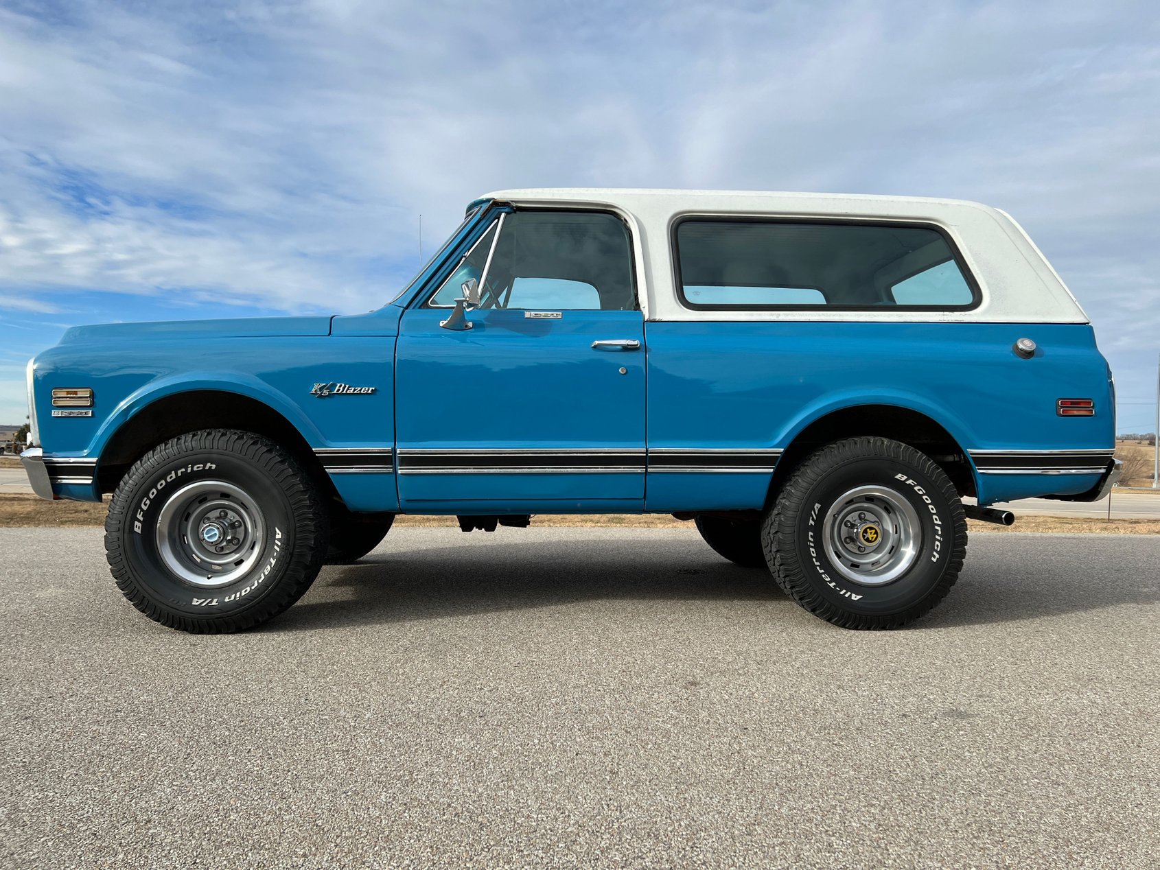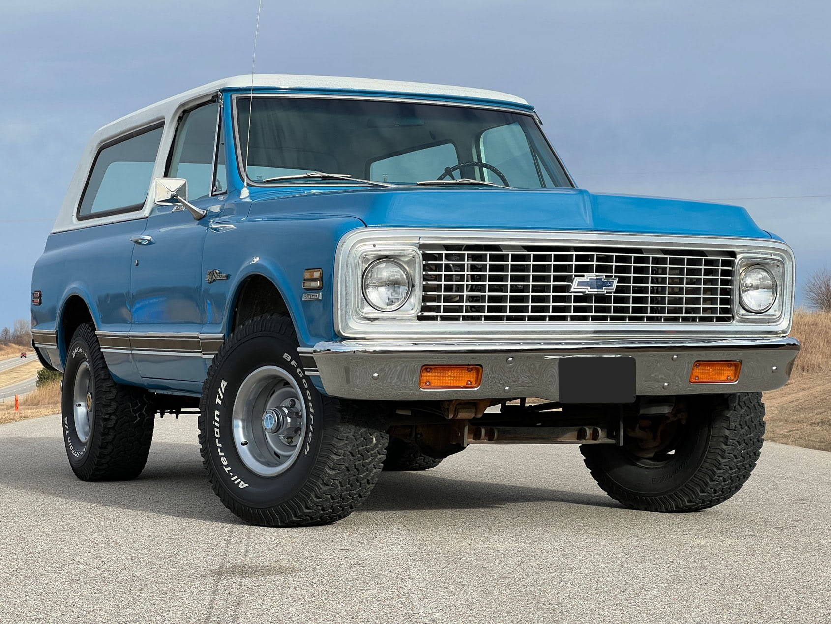 This 1972 Chevrolet K5 Blazer Cheyenne CST 4×4 is a classic off-road icon, finished in a striking Medium Blue paint that highlights its rugged charm. As a Custom Sport Truck (CST) with the Cheyenne package, this Blazer combines both style and functionality.