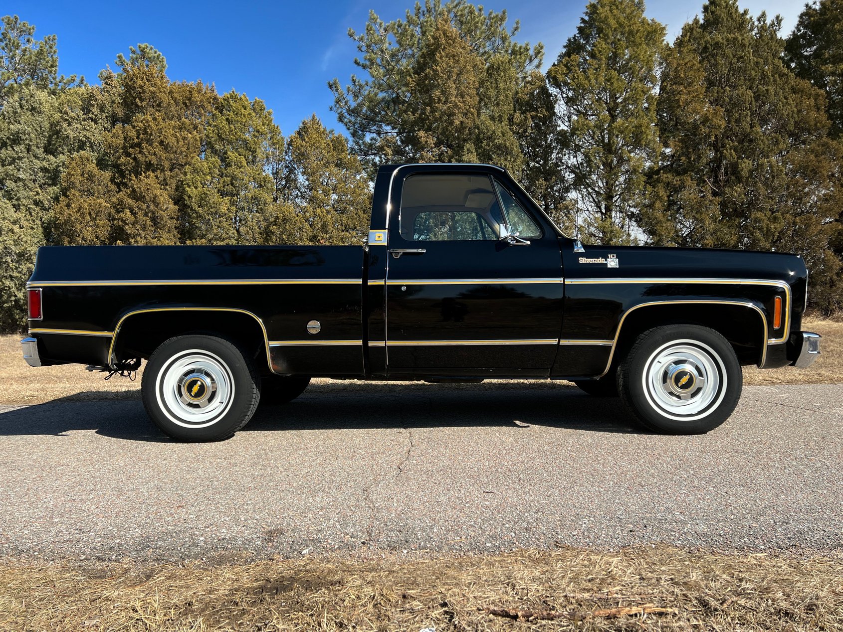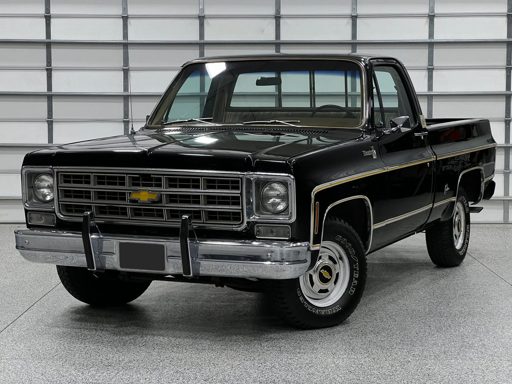 This 1977 Chevrolet C10 Short Box combines classic style with robust performance, featuring a Chevrolet LS9 350ci V8 engine and a TH-350 automatic transmission. The truck retains its factory-original chrome and trim, showcasing its classic appeal.
